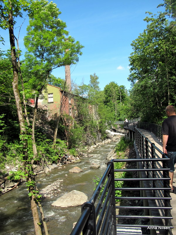 Ha i skiver med rabarbra, ca 1 cm tykke. Gjerne kuttet på skrå.